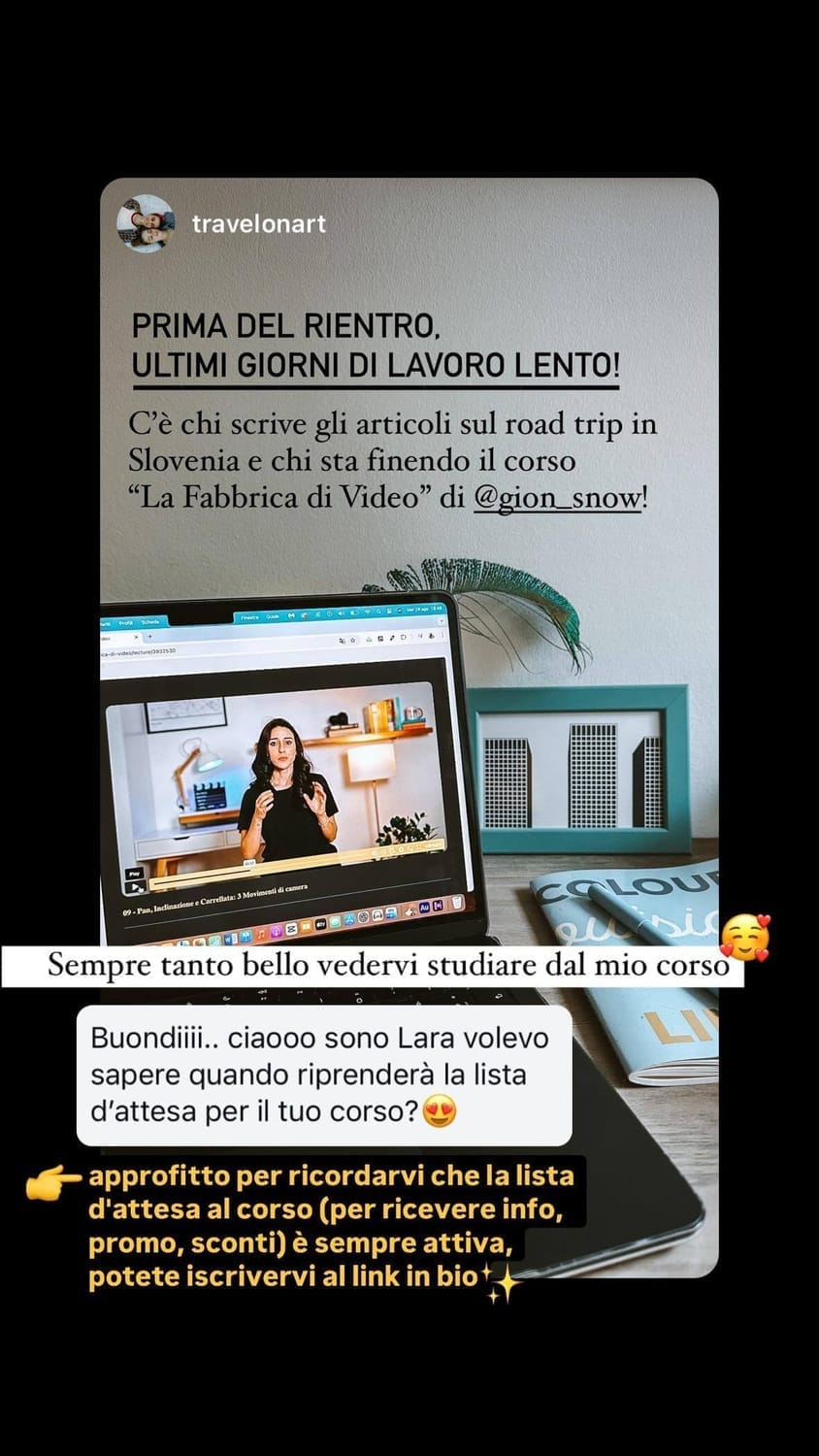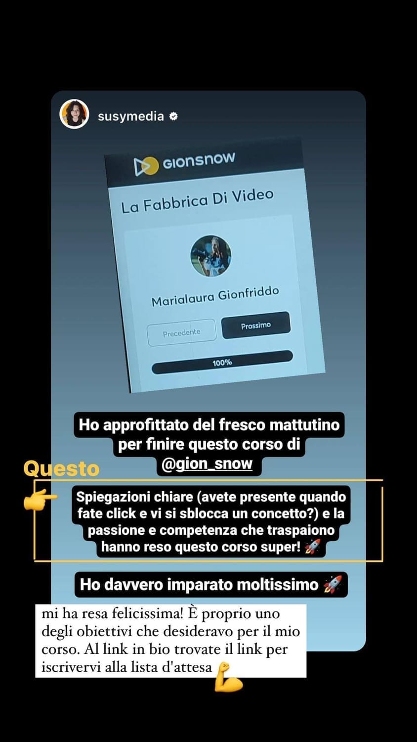 In questi anni ho affiancato oltre 200 studenti e clienti nella creazione dei loro contenuti video.