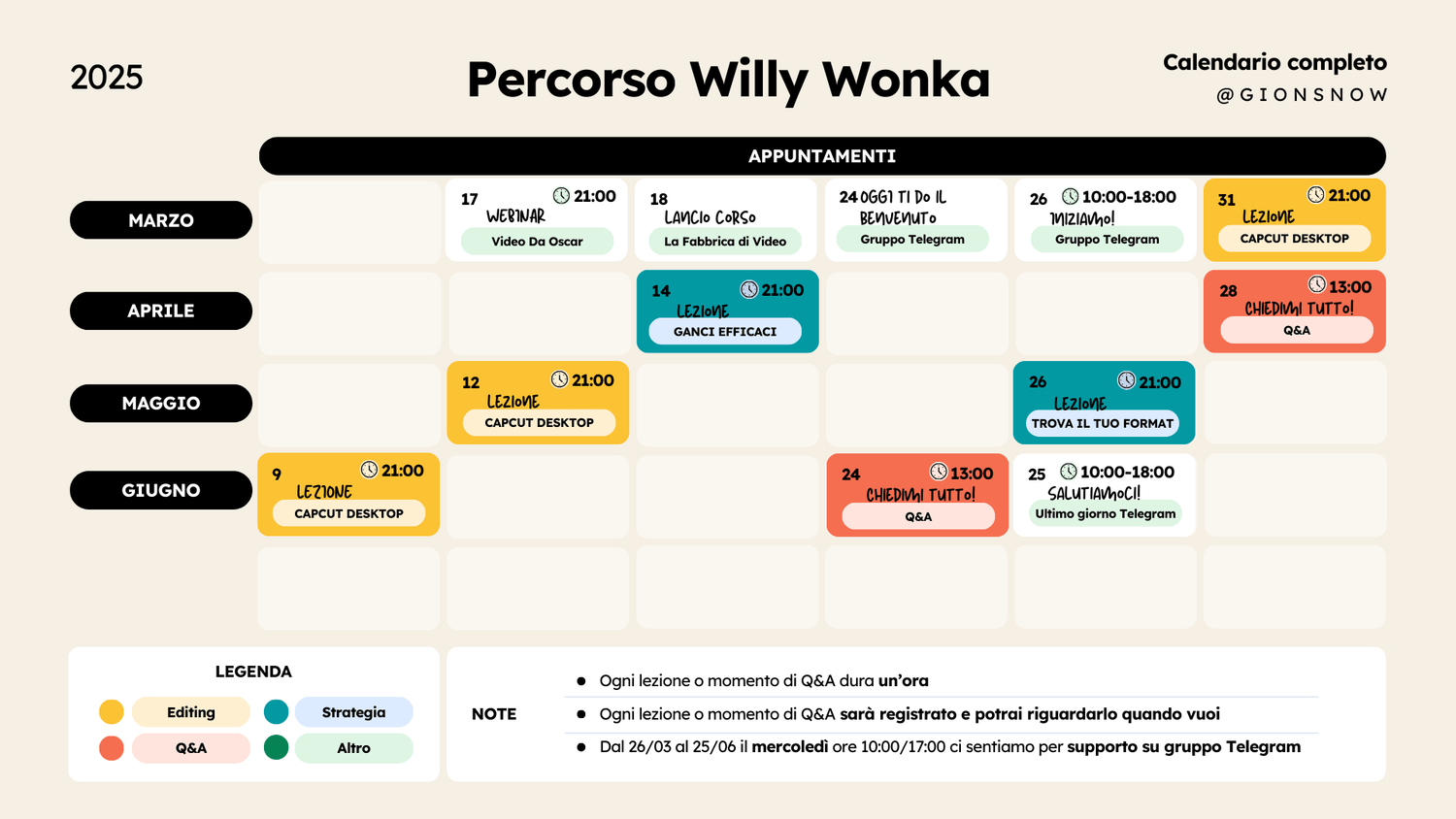 5 lezioni live in 3 mesi (1 ogni 12 giorni) per lavorare sulla tua strategia video